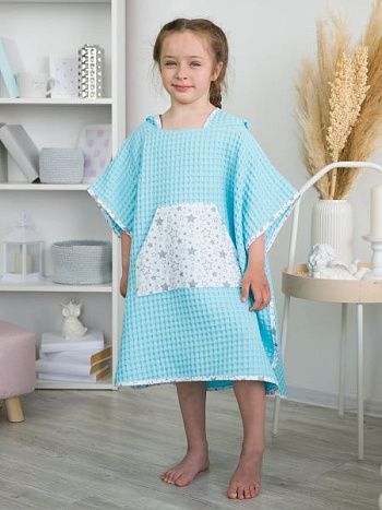 Пончо "ВАФЕЛЬНОЕ ПРИКЛЮЧЕНИЕ" бирюзовое