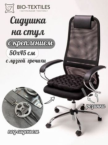 Био-подушка на стул с лузгой гречихи, черная, 50*45