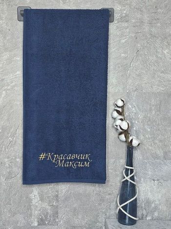 Полотенце с вышивкой 70*140 "красавчик" Алексей темно-синее