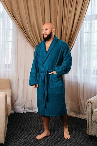 Халат махровый мужской синий 64-66