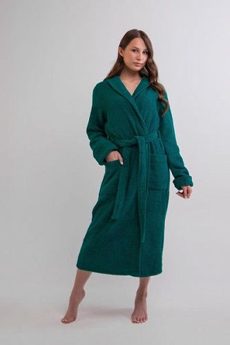 Халат махровый женский с капюшоном изумруд