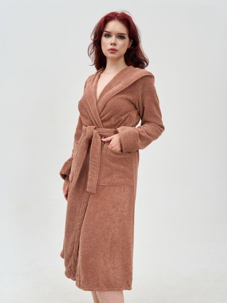 Халат вафельный PandaHug Оrlando мокко с капюшоном