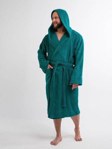 Халат мужской махровый PandaHug с капюшоном, лазурный