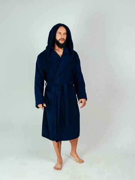 Халат махровый с капюшоном, темно-синий с вышивкой