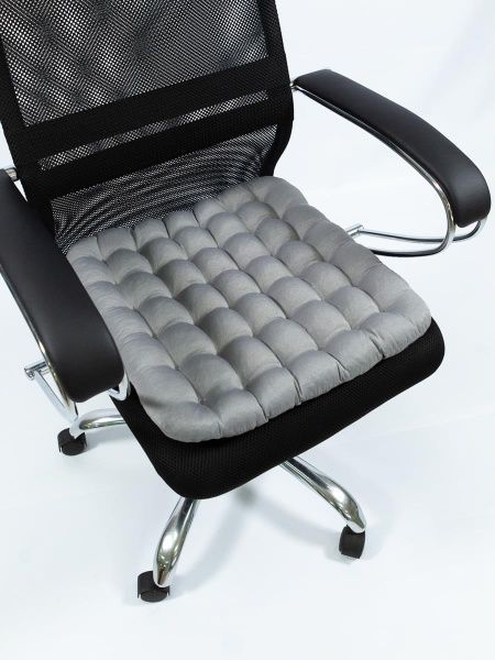 Био-подушка на стул с лузгой гречихи светло-серая 50*45