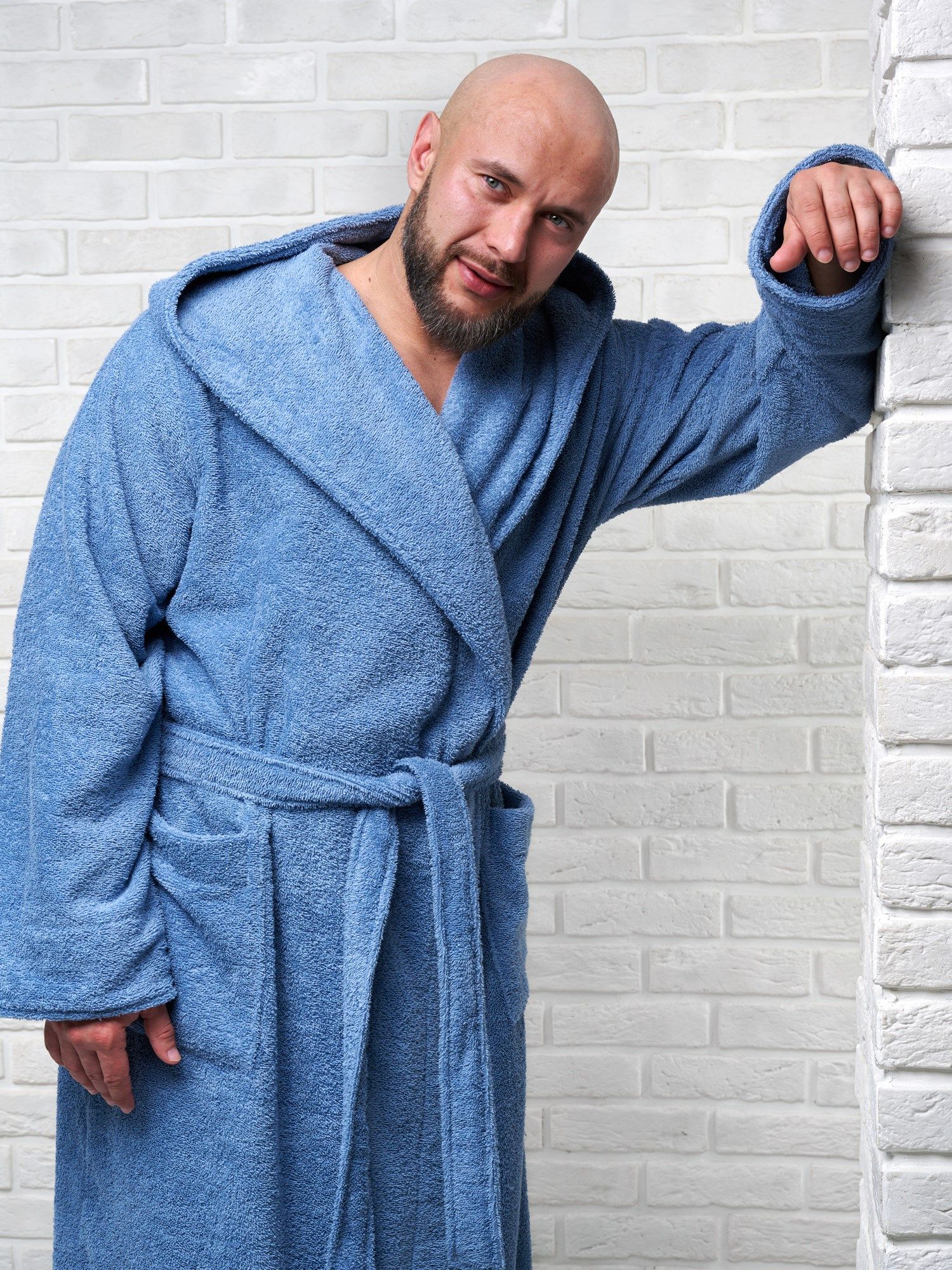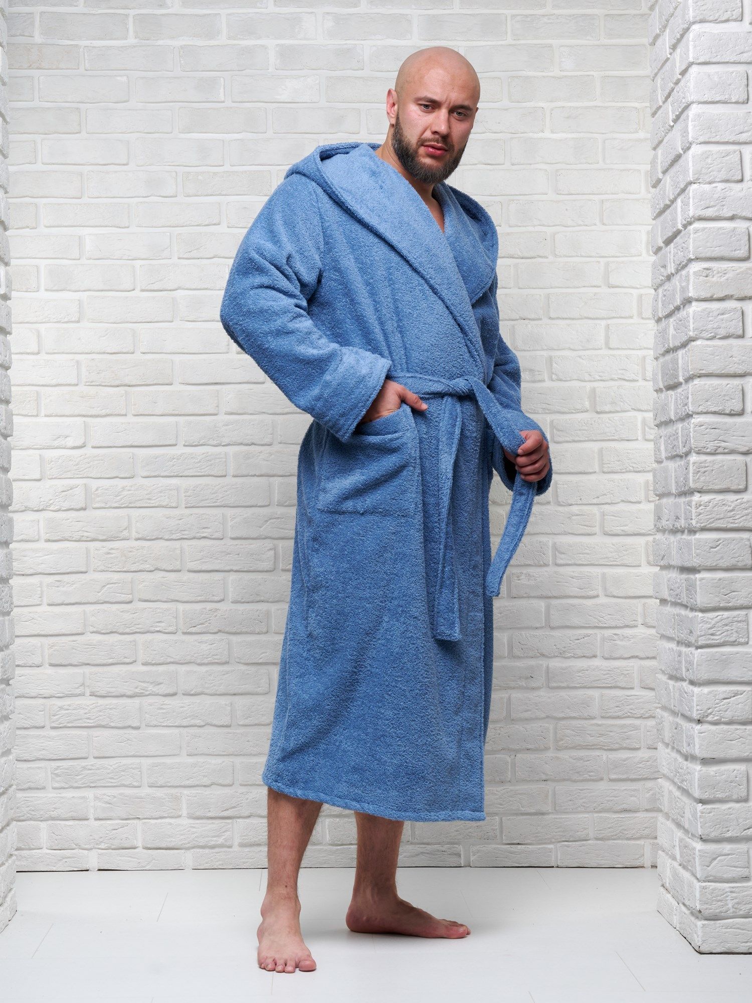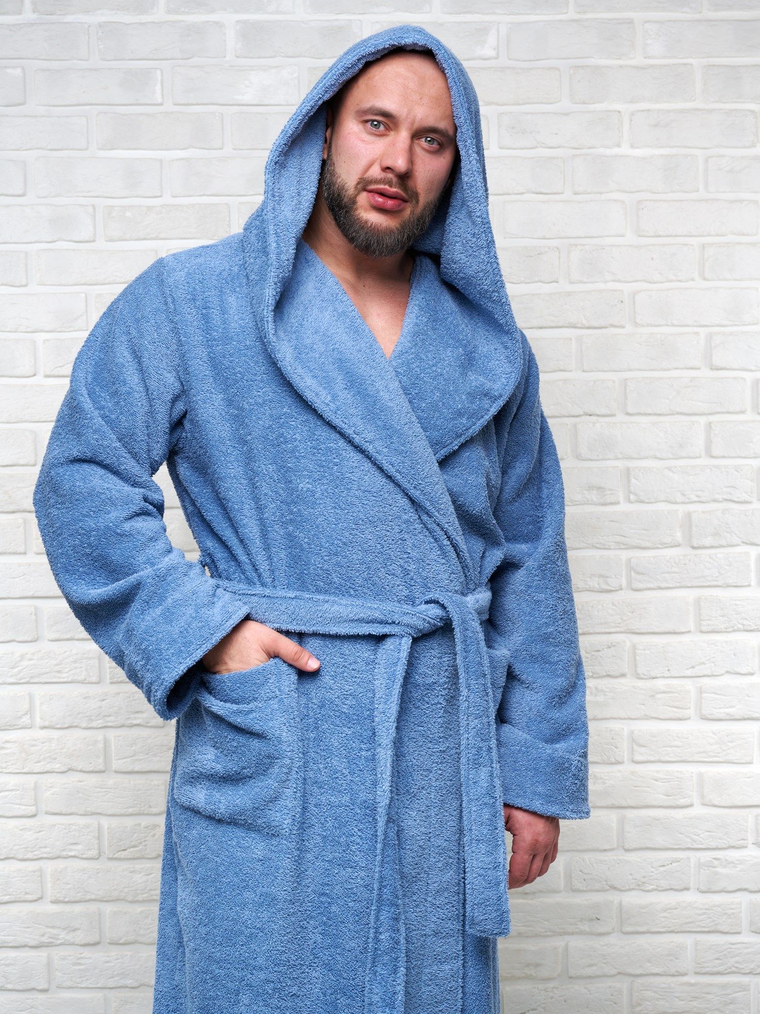Халат мужской махровый PandaHug с капюшоном, лазурный