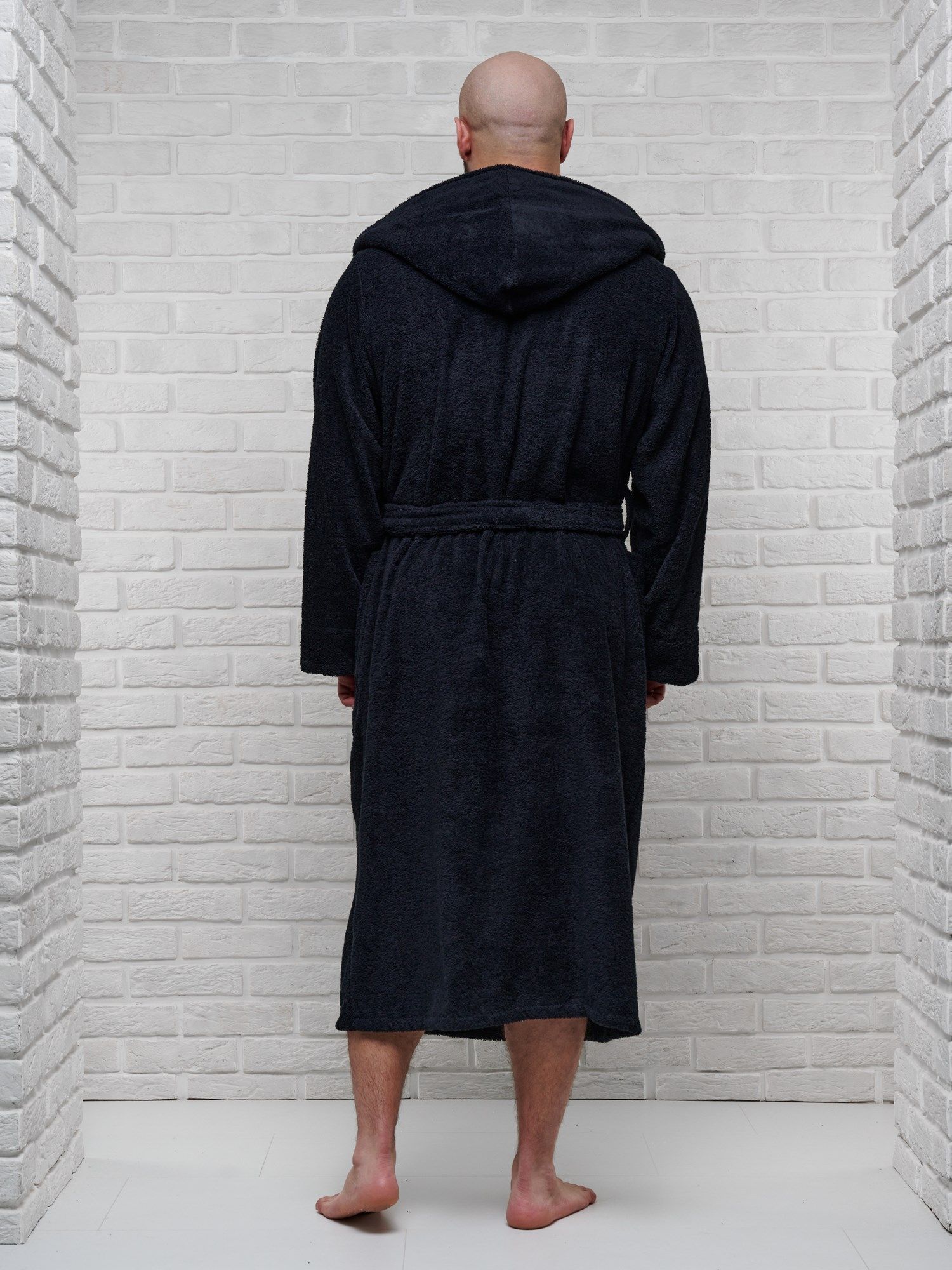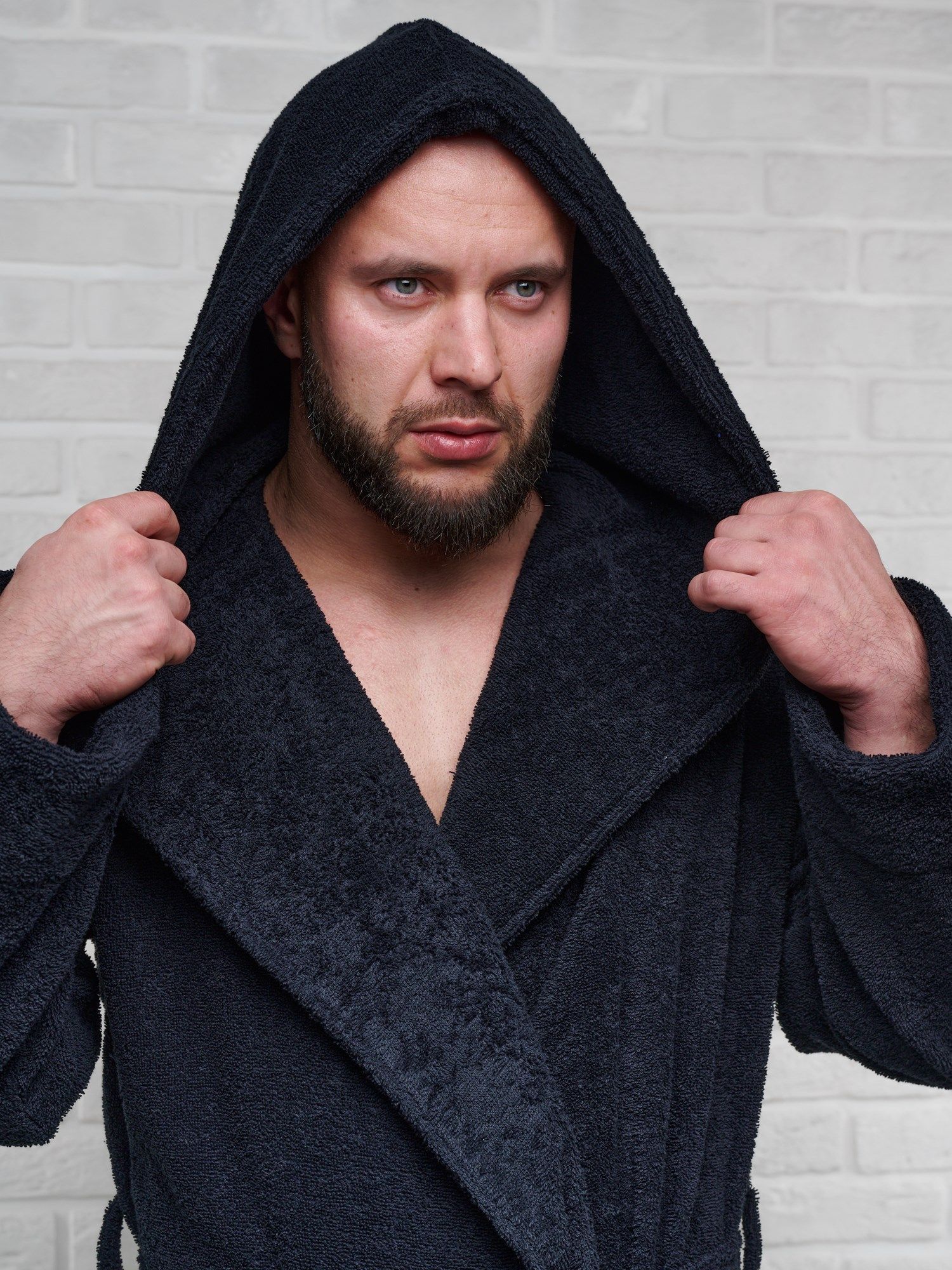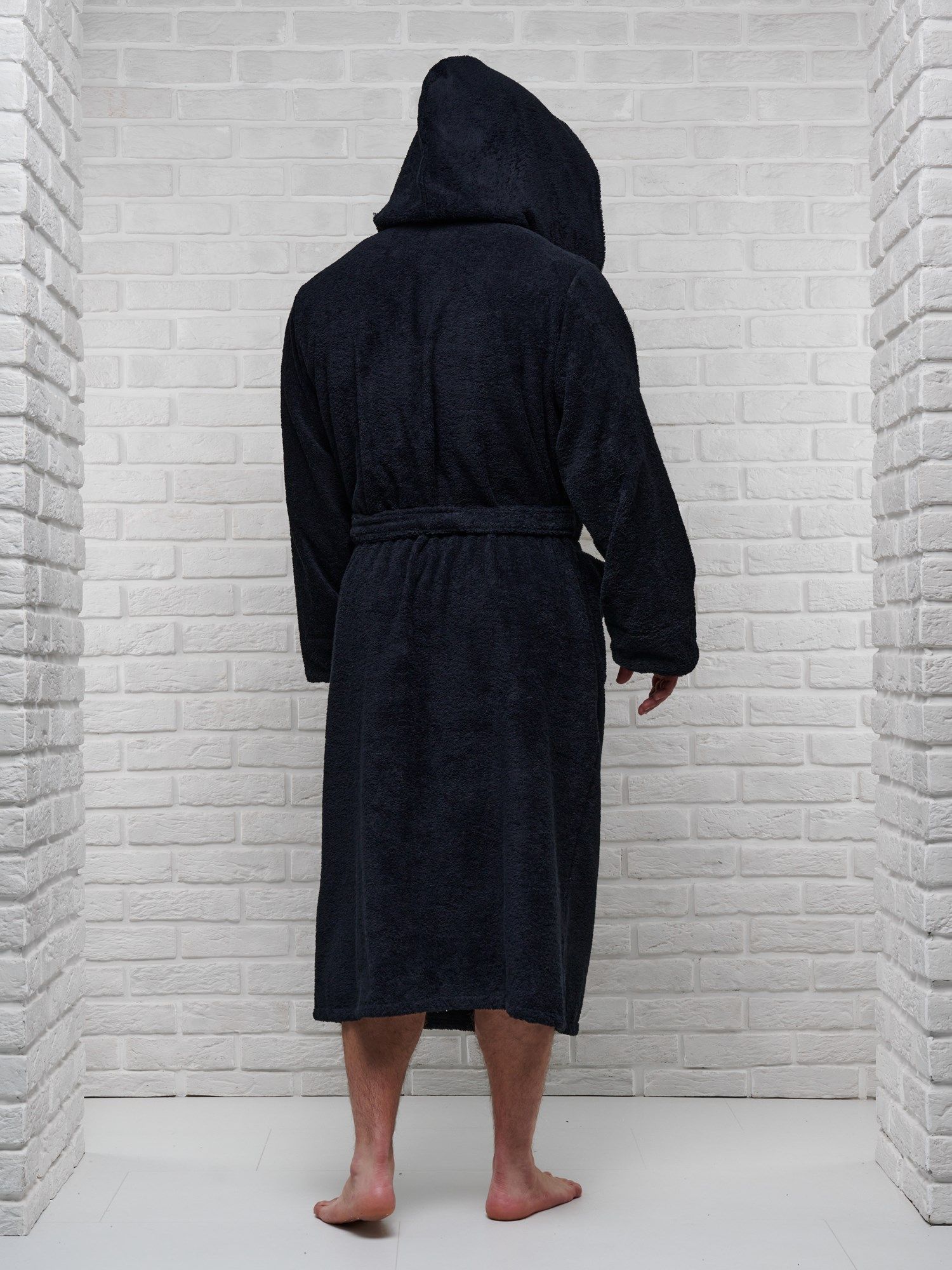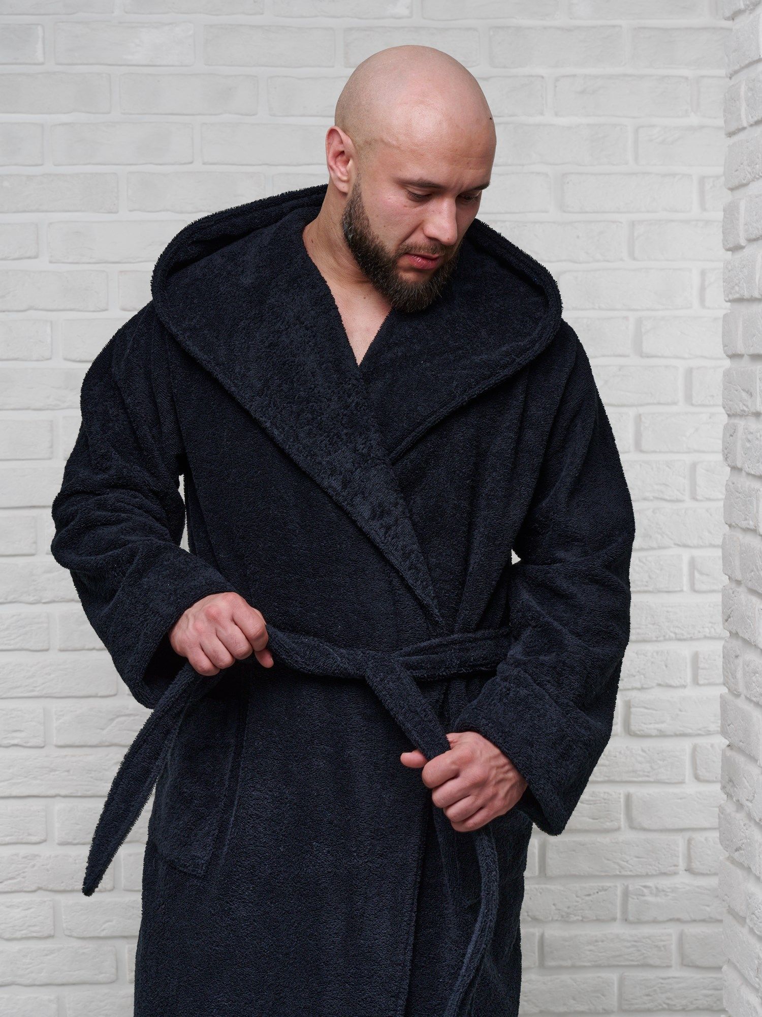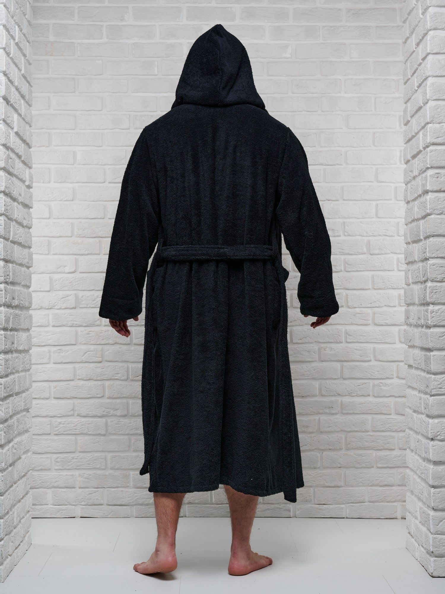 Халат мужской махровый PandaHug с капюшоном, черный