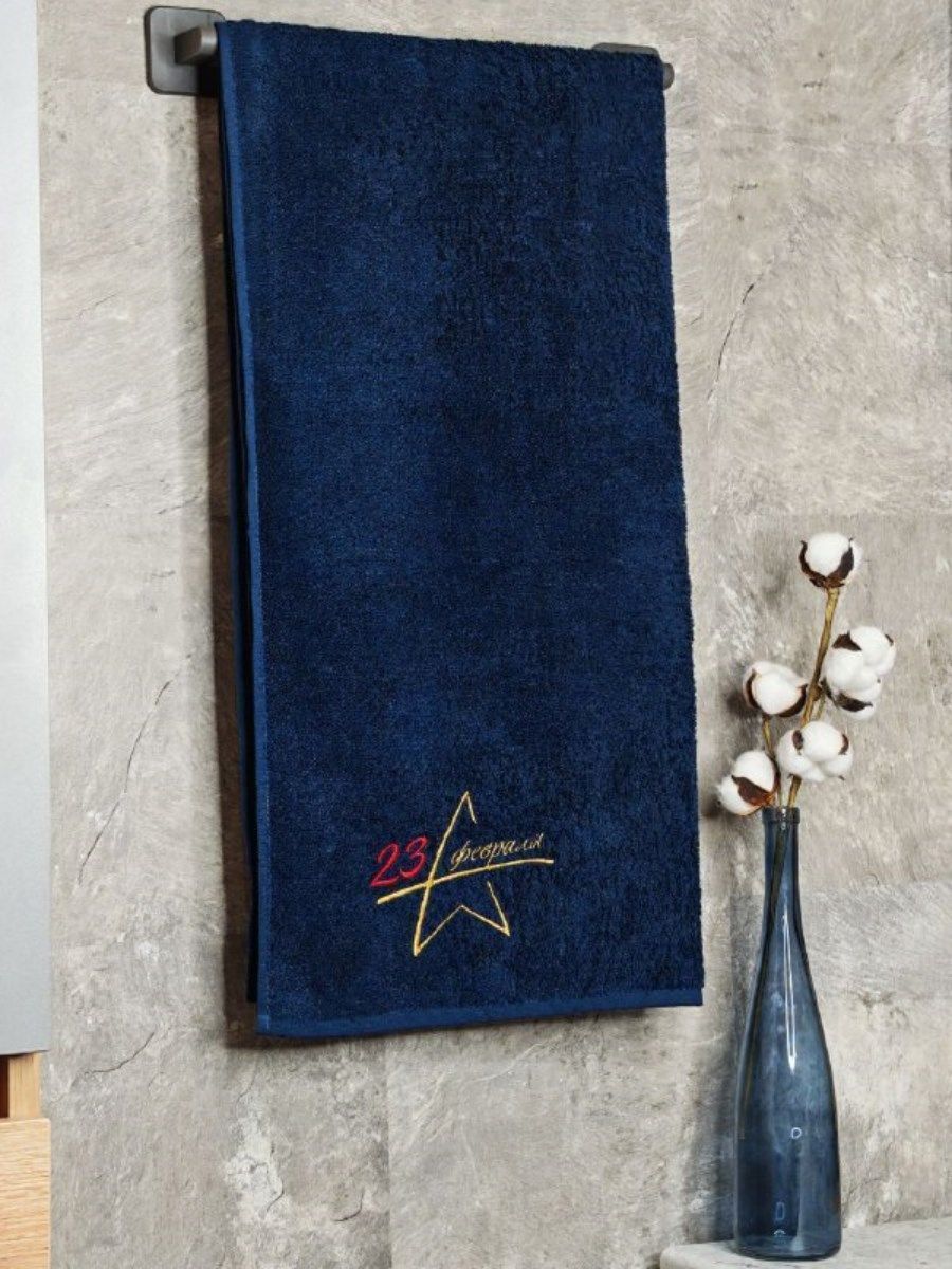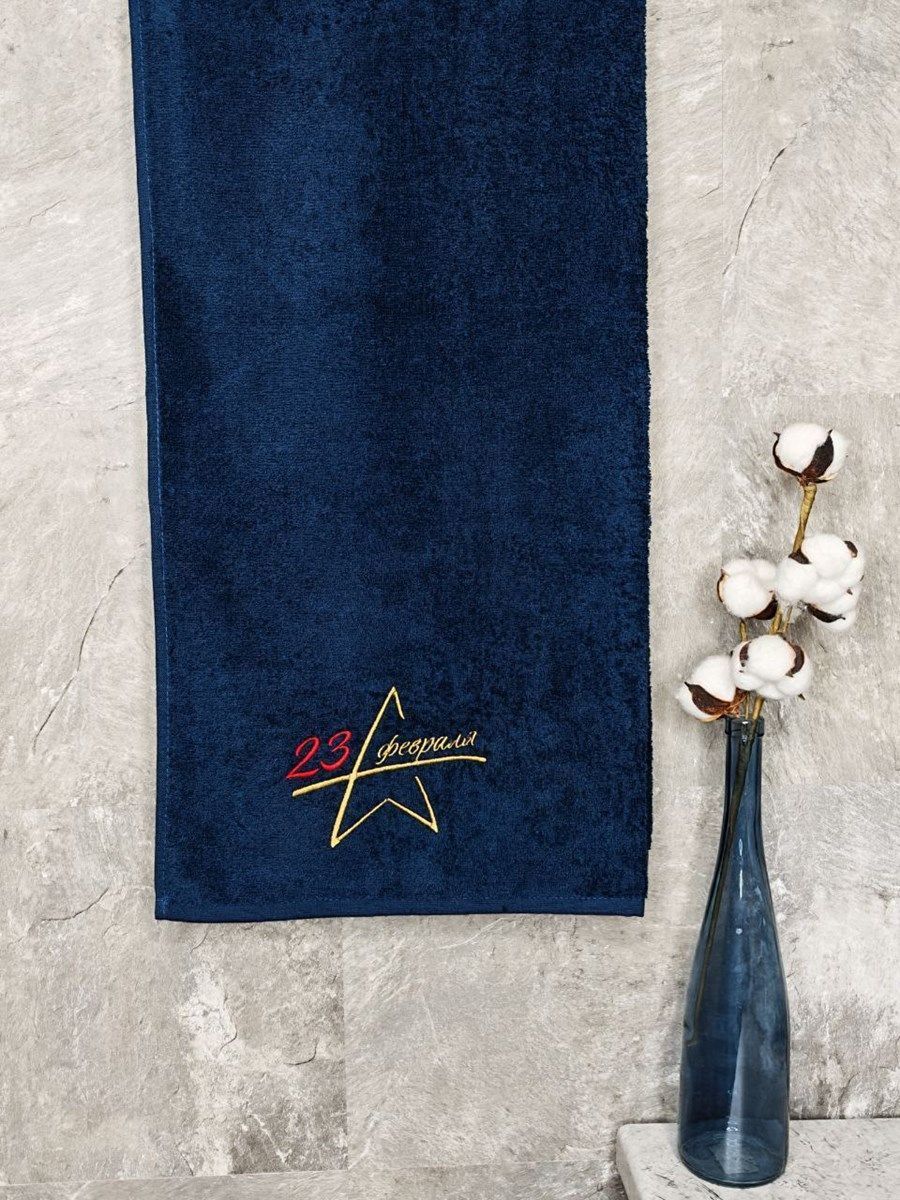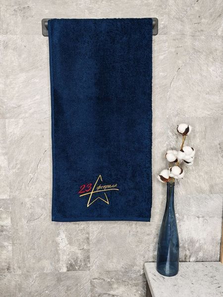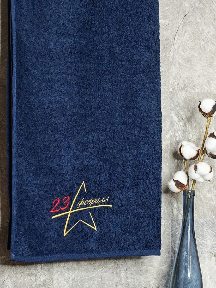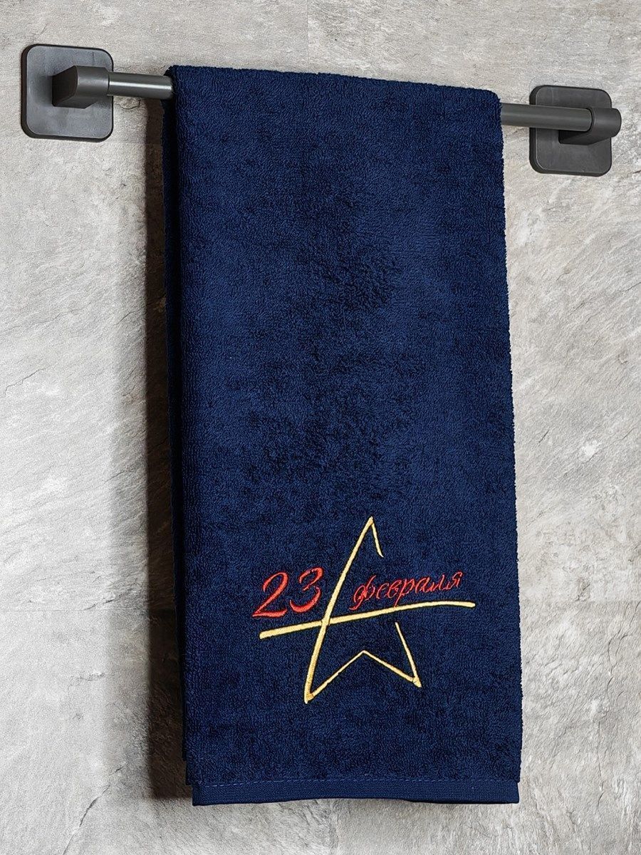 Полотенце с вышивкой "23 февраля" темно-синее