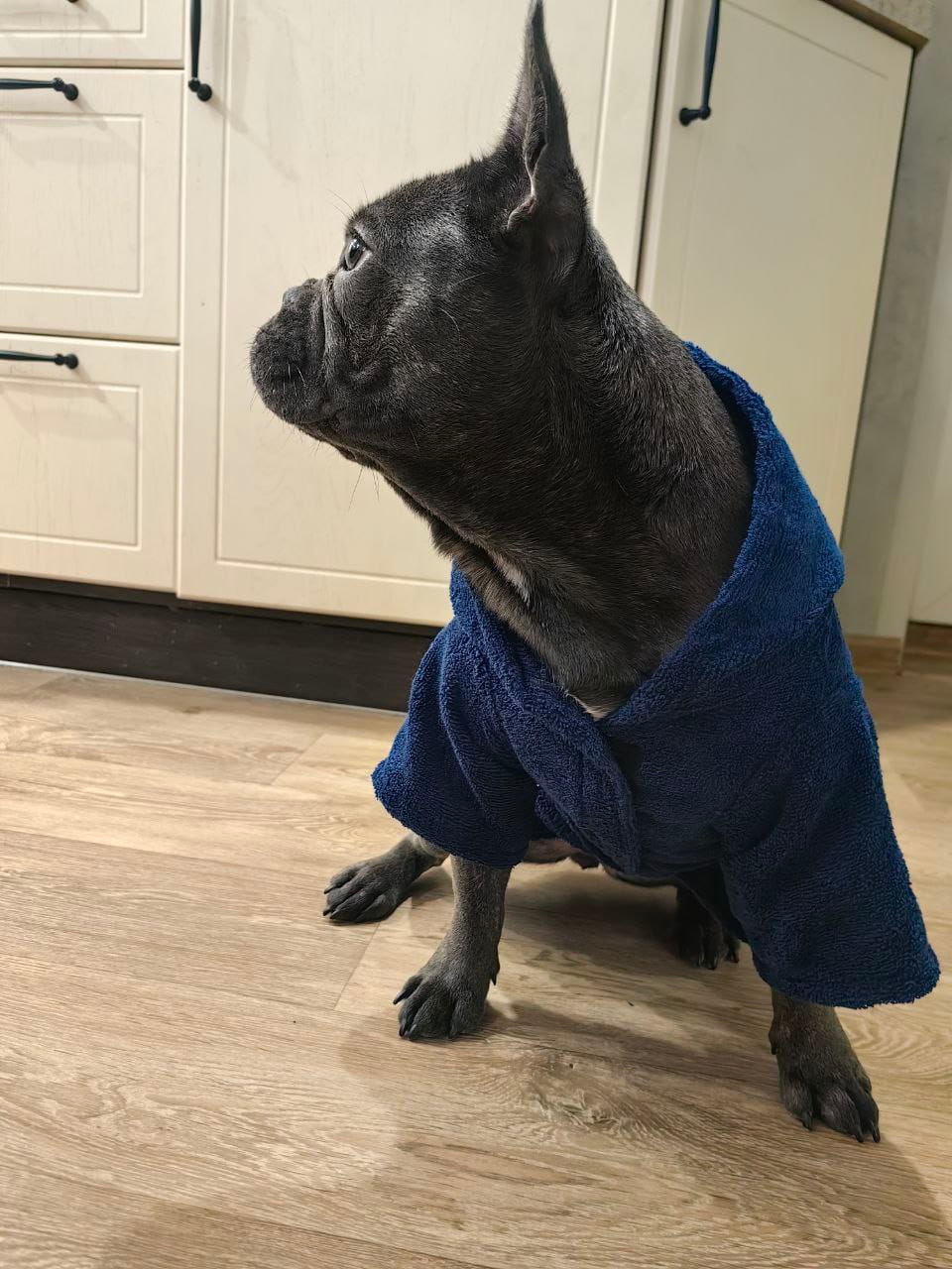 Посадка: Халат не сковывает движения, обеспечивая питомцу полную свободу.