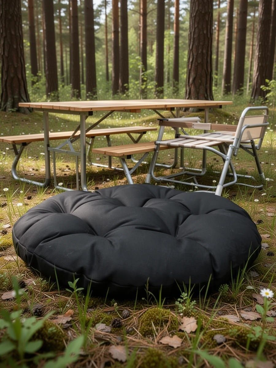 Надёжная грета: Водоотталкивающий и износостойкий материал. Подушка не боится утренней росы, случайно пролитых напитков и грязи (легко чистится влажной губкой).