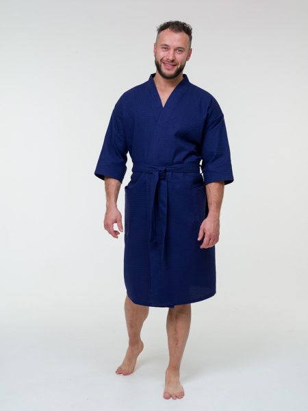 Халат вафельный темно-синий