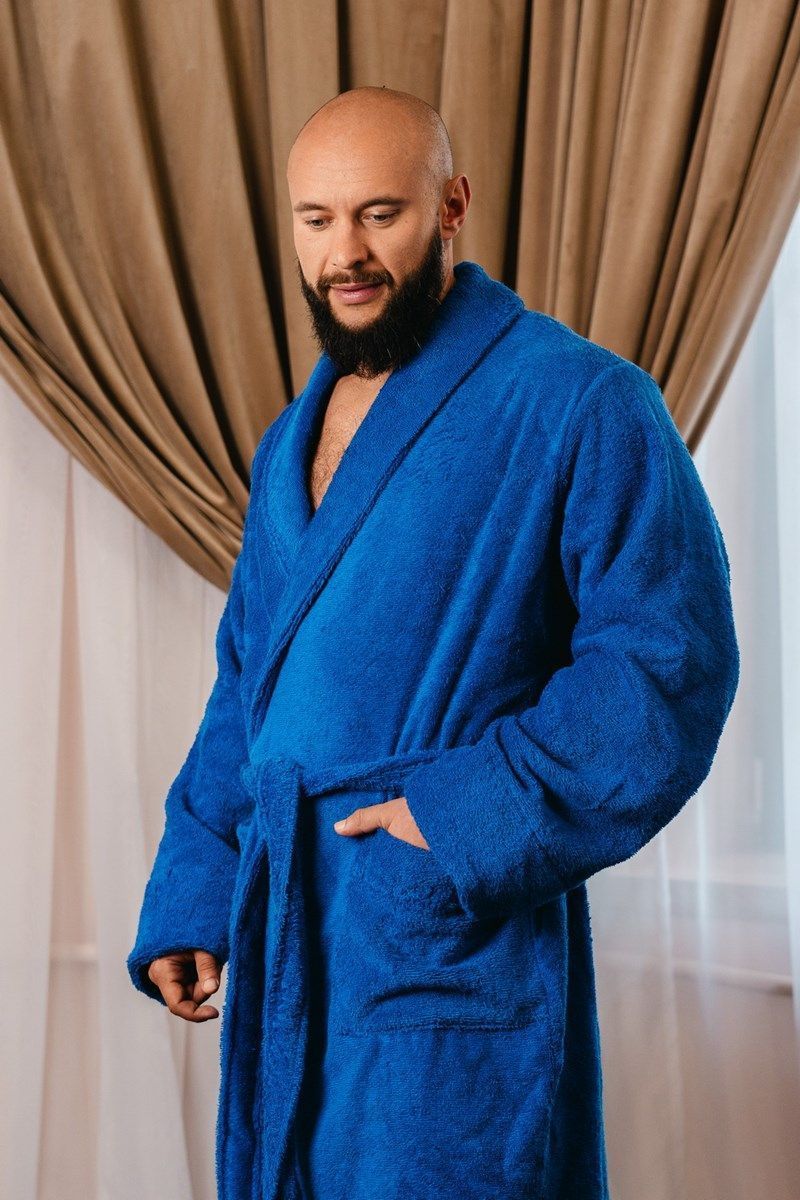 Стильный и удобный махровый халат для мужчин обеспечит комфорт и практичность. Качественная махровая ткань выполнена из натурального хлопка в Узбекистане. Благодаря крою халата, он очень удобен, свободно «сидит».