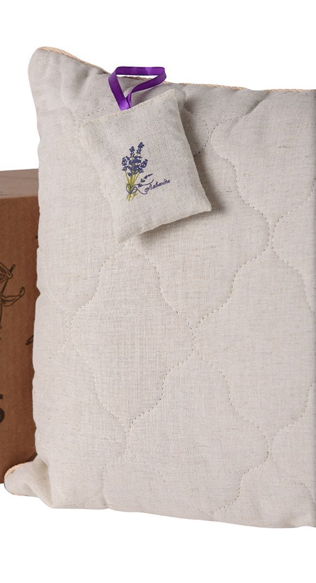 Подушка выполнена в уникальном чехле, который представляет собой натуральный лен, простеганный верблюжьей шерстью. Благодаря такой стёжке жёсткая гречишная подушка стала теплее и мягче на поверхности.