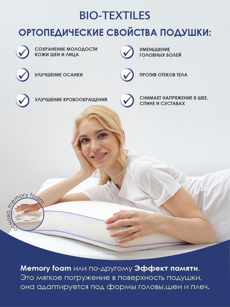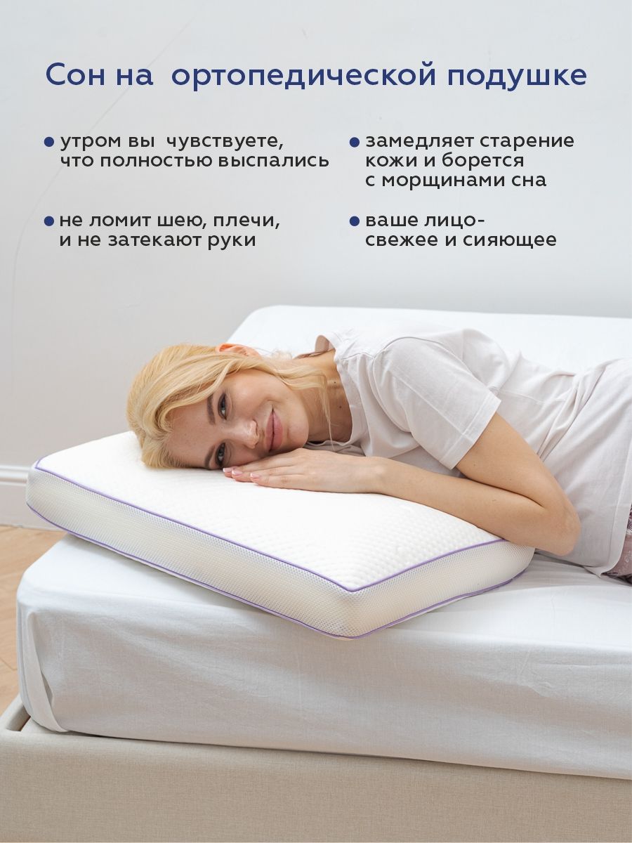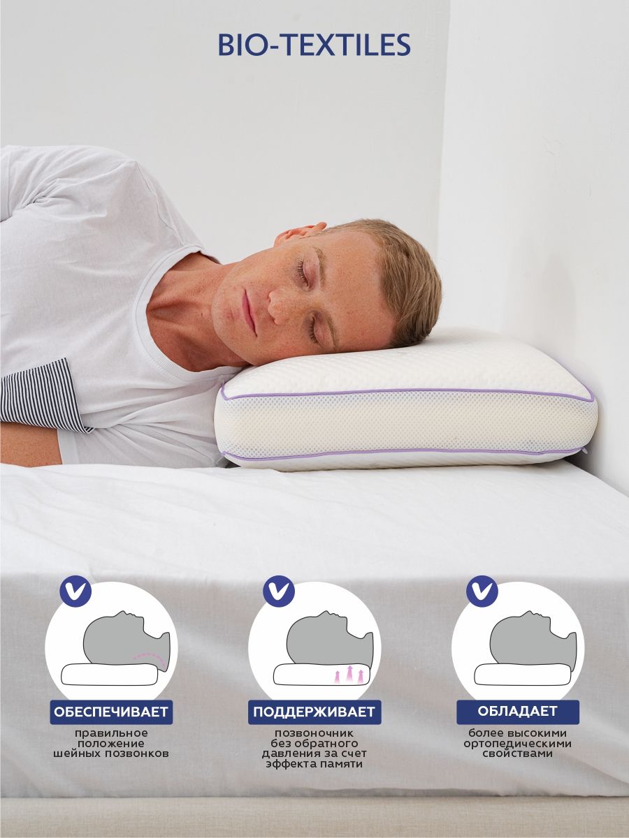 Материал подушки – дробленый вязкоэластичный пенополиуретан с эффектом «памяти», обладающий особыми физико-механическими свойствами. Классическая прямоугольная форма наперника данной подушки является универсальной. Долговечность и безопасность материала гарантирует продолжительный срок службы. Мягкая и приятная, но в тоже время упругая подушка аккуратно подстроится под изгибы тела, размягчаясь от тепла, окажет ортопедический эффект. Создавая ощущение невесомости, подушка бережно поддержит голову и шею в максимально комфортном положении. Сон на такой подушке поможет избежать бессонницы, головных болей и дискомфорта в шейном отделе.
