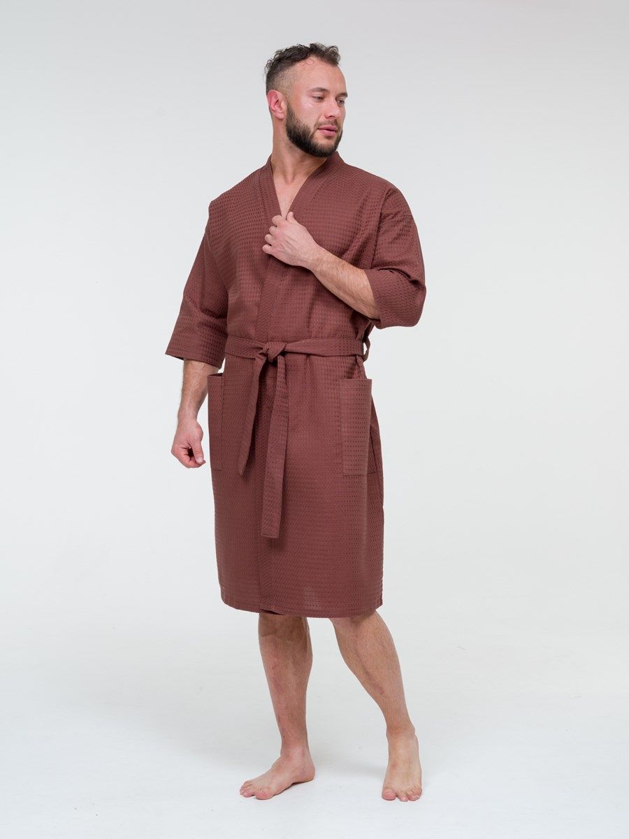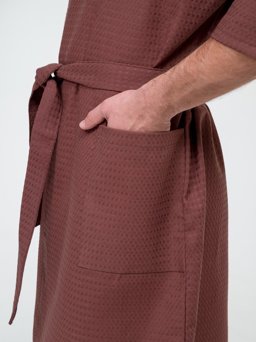 Халат достаточно легкий, а мелкие квадратики вафельной ткани создают воздушную подушку между халатом и кожей, за счет чего сохраняется комфортная температура тела, а после водных процедур кожа быстрее высыхает.