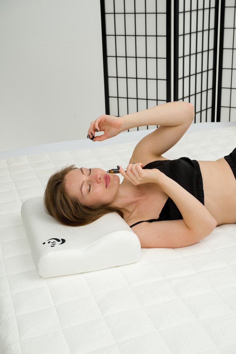 Подушка в форме волны с перфорацией и эффектом памяти поддерживает голову, шею и грудной отдел позвоночника в физиологически правильном положении. Это отличная профилактика остеохондрозов, головных болей, нарушений сна. В конструкции два валика – для сна на боку и спине.