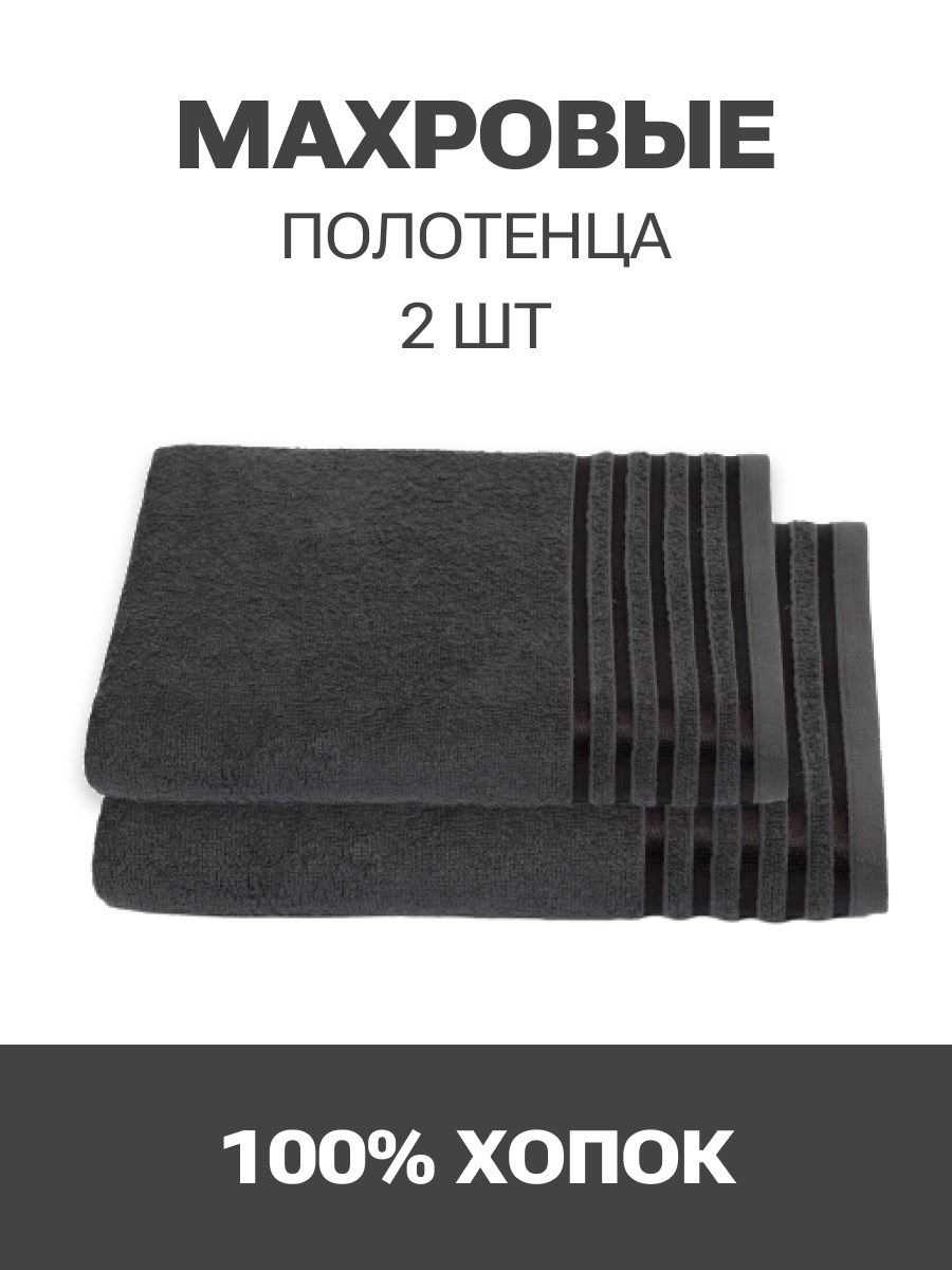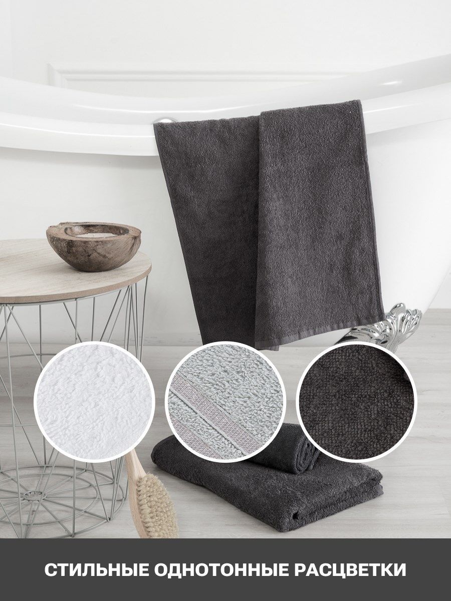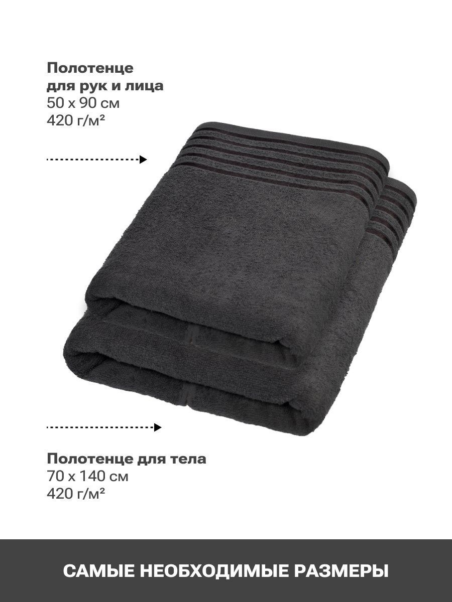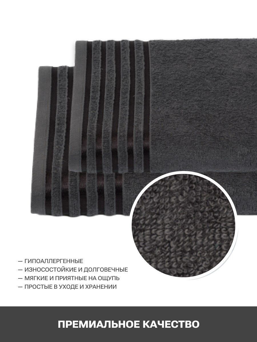 Набор Полотенец махровых PandaHug Cozy Stripe темно-серое с бордюром 140х70, 90х50