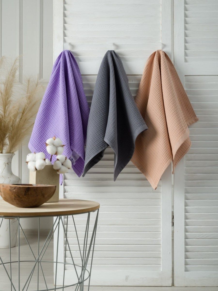 Полотенца изготовлены из вафельной ткани высокого качества с рельефным безворсовым плетением в виде крупной мягкой клетки. Эти полотенца намного толще и пышнее привычных вафельных полотенец.  Благодаря особому плетению и крупной клетке ткань получилась мягкой и очень воздушной. При соприкосновении с кожей она не вызывает раздражения или неприятных ощущений. Нежное как облачко, это полотенце идеально подойдет малышам и людям, которые ценят свой комфорт. Вафельное полотно произведено из 100% хлопка на современном  итальянском оборудовании в Республике Узбекистан. Оно обладает высокой прочностью и износостойкостью, что обеспечивает изделиям из него долгий срок службы и практичность в использовании. Даже после многократных стирок изделие не линяет, не деформируется и полностью сохраняет свои свойства.