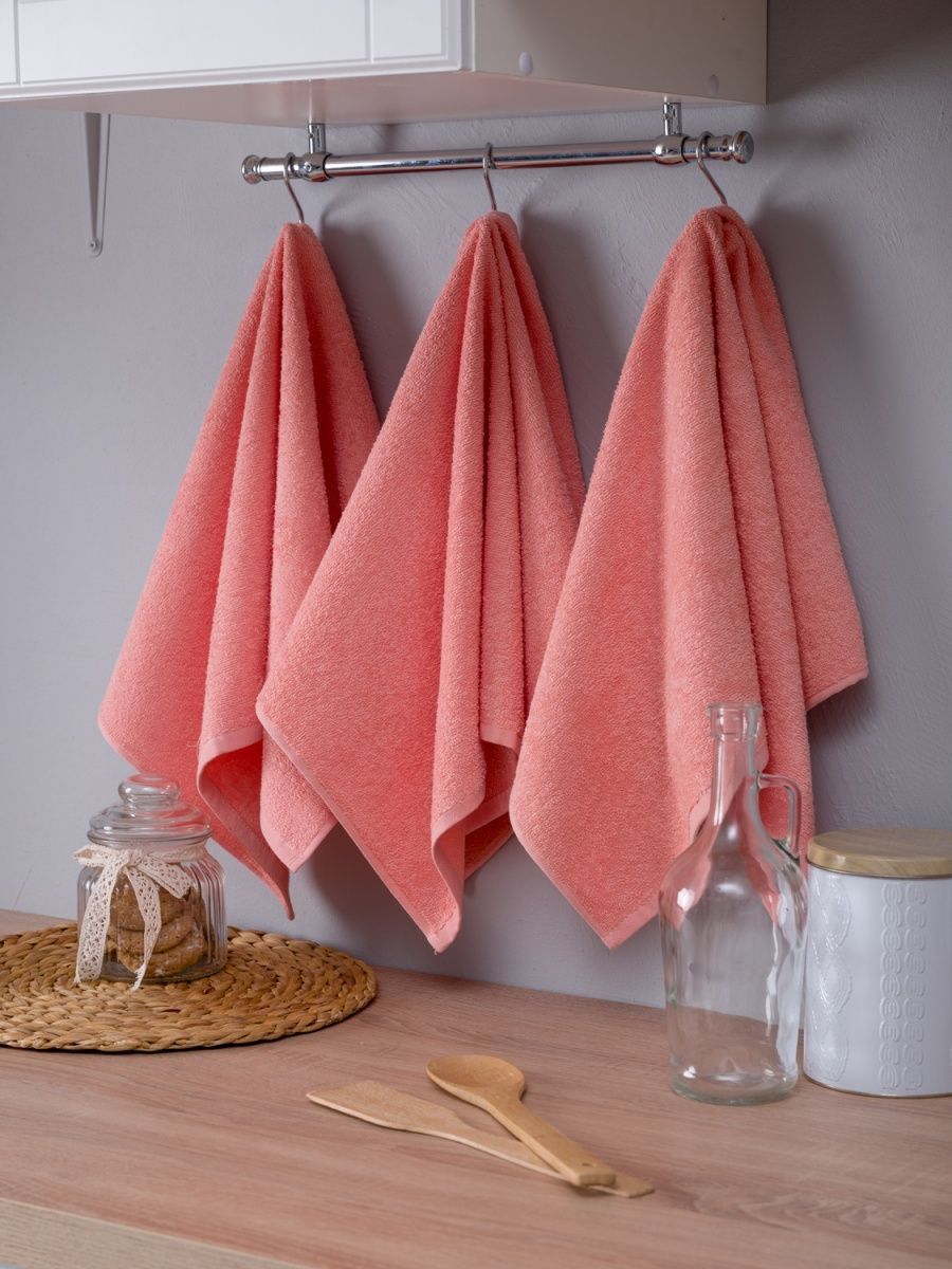 Набор махровых полотенец 3 шт (40*70) персиковый Npol/8368