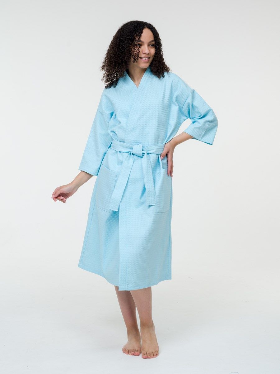 Вафельный банный халат — отличный выбор для любителей комфорта и уюта. Вафельная хлопковая ткань абсорбирует влагу быстрее, чем любой другой материал, поэтому, если вы ищете практичный вариант халата после душа или сауны, то на изделия из вафли точно стоит обратить внимание.